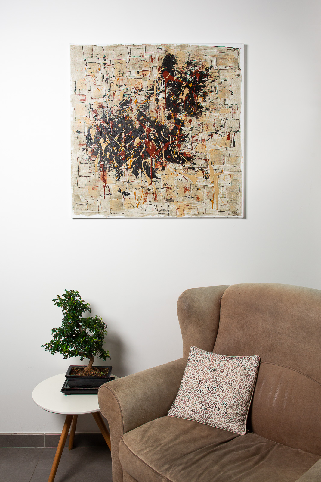 Peinture acrylique et pigments naturels mélangés à un enduit, sur toile de lin et châssis en bois