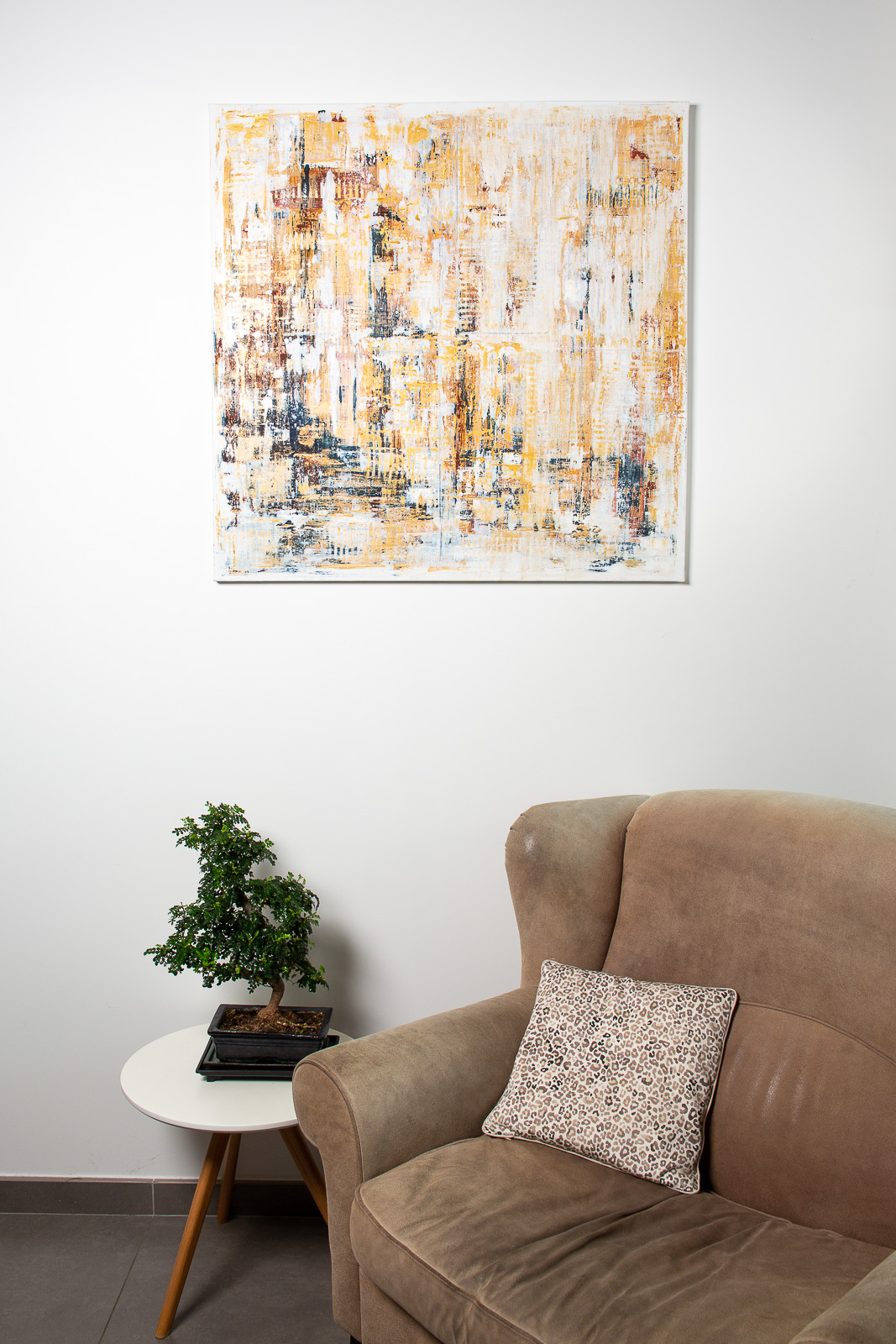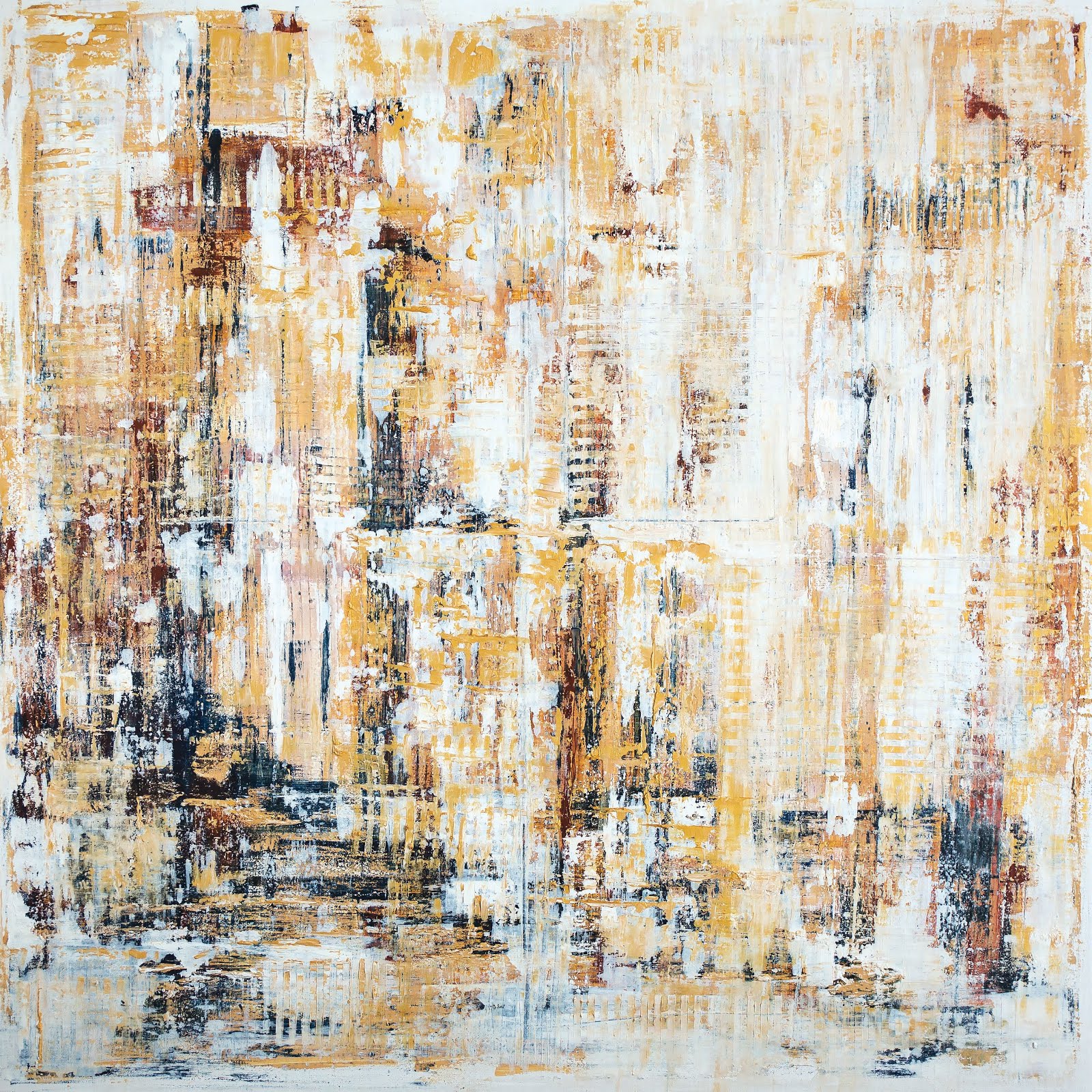 Enduit mélangé à des sables et des pigments naturels, peinture acrylique, sur toile de lin et châssis en bois